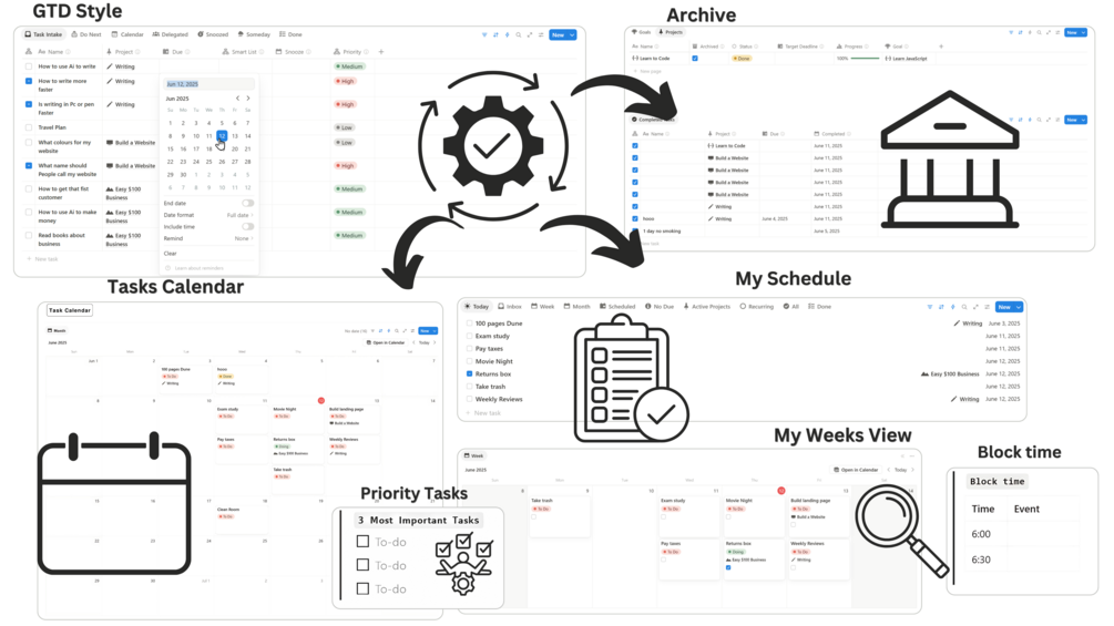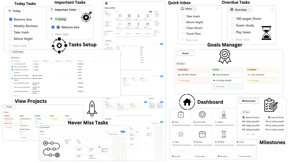 Whether you’re a GTD enthusiast or just need a smarter way to manage your day, Tasks & GTD is your all-in-one solution—ready to plug right into your Notion workspace.