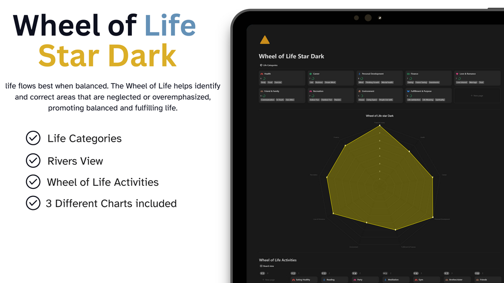 The Wheel of Life is like a river flowing through different aspects of your existence. Just as a river's flow can be disrupted by rocks and obstacles creating turbulent waters, our life can become unbalanced when certain areas are neglected or overemphasized. The goal is to achieve a smooth, steady flow—where each area of life moves in harmony with the others. This powerful self-assessment tool helps you identify where the current is too strong or too weak, allowing you to make adjustments for a more balanced journey.